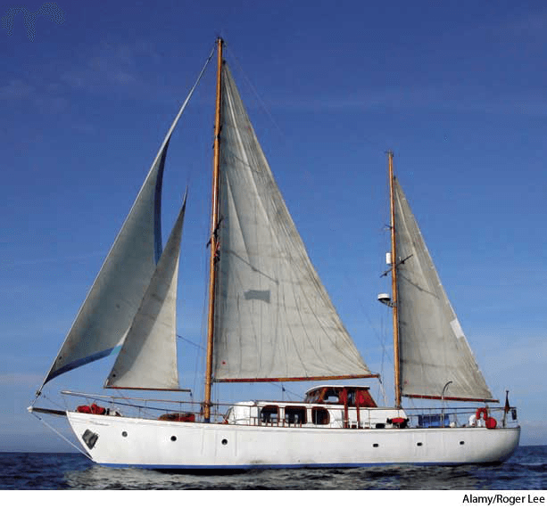 ketch AHD[kĕch] D.J.[ketʃ]K.K.[kɛtʃ]n.Nautical(名词)【航海】 ketch- A two-masted fore-and-aft-rigged sailing vessel with a mizzenmast stepped aft of a taller mainmast but forward of the rudder.双桅纵帆船:一种两桅杆的纵向帆船,后桅竖于较高的主桅后的桅座上,同时又位于船舵前面