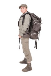 A woman wearing a backpack or knapsack.