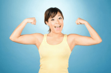 A young woman with her arms flexed.