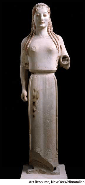 ko·re AHD[kôrʹē, kōrʹē, kôrʹā, kōrʹā] D.J.[ˈkɔːriː, ˈkəʊriː, ˈkɔːreɪ, ˈkəʊreɪ]K.K.[ˈkɔri, ˈkori, ˈkɔre, ˈkore]n.(名词)pl. kor.ai[kôrʹī, kōrʹī]  korec. 530 bc Greek marble statue- A sculpture representing a standing young woman clothed in long robes, especially one produced in Greece before the fifth centuryb.c. 年轻女子塑像:身披长袍站立的年轻女子的雕像,尤指公元前 5世纪的希腊雕像