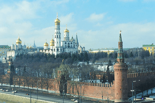1. The citadel of Moscow, housing the offices of the Soviet government. The outer walls of the compound date to the 15th century.克里姆林宫:莫斯科的城堡,是苏联政府的办公所在地。城堡的外城墙始建于15世纪