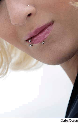 An ornament inserted into a perforation in the lip.