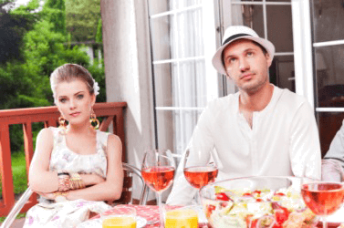 A couple at a lackluster party.