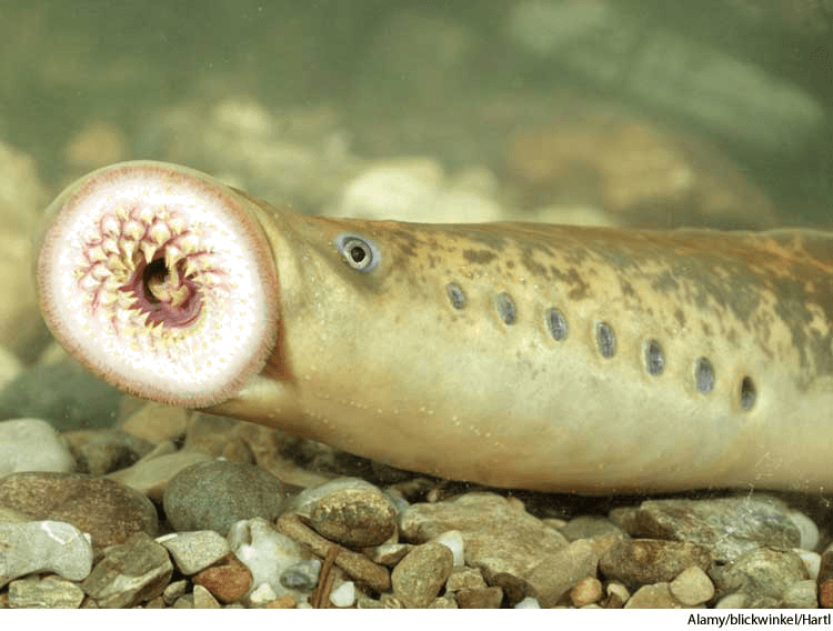 - from Old French lampreie 源自 古法语 lampreie