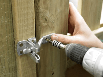 A latch being installed to a gate.