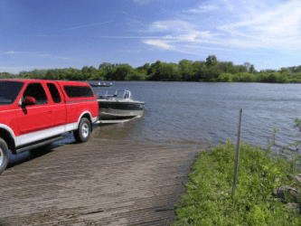 A boat being launched.