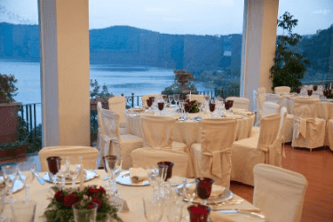 Tables set for a lavish party.