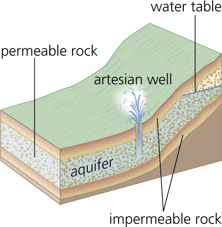 ar·te·sian well AHD[är-tēʹzhən] D.J.[ɑːˈtiːʒən]K.K.[ɑrˈtiʒən]n.(名词) A water table higher than the well ensures water pressure will consistently force water into an artesian well.Precision Graphics- A well drilled through impermeable strata to reach water capable of rising to the surface by internal hydrostatic pressure.自流井:一种穿过不透水地层至地层内部流体静压力可使水升到地表水层的井