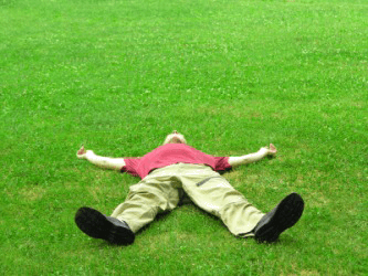 A man lies in the grass.