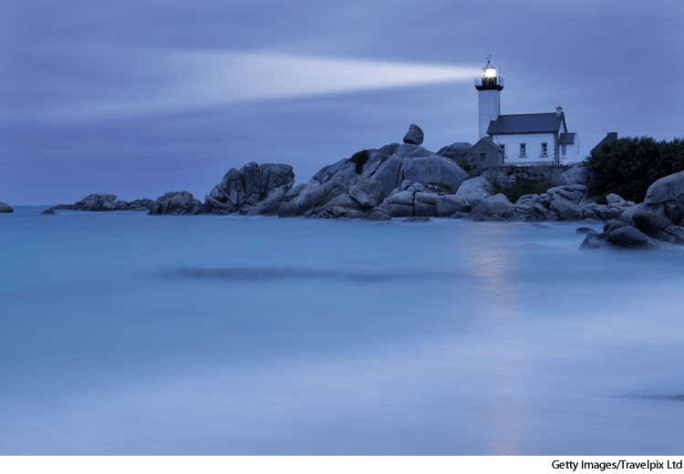 light·house AHD[lītʹhous'] D.J.[ˈlaɪtˌhaʊs]K.K.[ˈlaɪtˌhaʊs]n.Nautical(名词)【航海】 lighthousePontusval Lighthouse on the Pointe de Beg-Pol coastBrittany, France- A tall structure topped by a powerful light used as a beacon or signal to aid marine navigation.灯塔:上面装有大功率照明灯的一种高建筑,用作指示海上航行的信标或标志