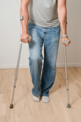 This mans injury causes him to limp.