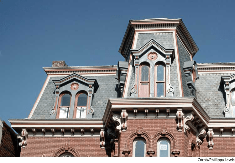 双斜坡式屋顶,复折式屋顶:都有双重斜坡的四边屋顶,斜坡的下部比上部陡峭