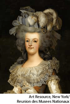 Marie An·toi·nette AHD[ăn'twə-nĕtʹ] (1755-1793) D.J.[ˌæntwəˈnet]K.K.[ˌæntwəˈnɛt]NONE(无词性) Marie Antoinettedetail of an 1868 portrait of Marie Antoinette with her children by Eugène Battaille (1817-1882) - Queen of France (1774-1793) as the wife of Louis XVI. Unpopular because of her extravagance and insensitivity toward the masses, she was tried by the Revolutionary Tribunal and executed.玛莉:法国王后(1774-1793年),路易十六之妻。生性奢侈,对人民大众的呼声无动于衷,声名狼藉,后被交付革命法庭审判并被处决