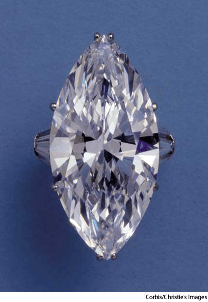 2. A pointed oval shape of a gem.宝石的尖状椭圆形