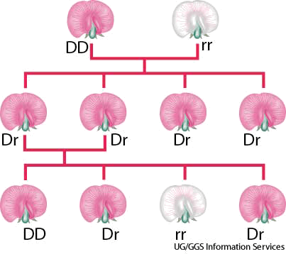 Men·del's law AHD[mĕnʹdlz] D.J.[ˈmendlz]K.K.[ˈmɛndļz]n.(名词) Mendel's lawMendel's First Law: When a plant with two dominant (DD) alleles is crossed with a plant having two recessive (rr) alleles (top row), the first generation of plants (middle row) will all have one dominant and one recessive (Dr) allele. In the second generation (bottom row), on average one of four plants will have two recessive alleles. - One of two principles of heredity first formulated by Gregor Mendel, founded on his experiments with pea plants and stating that the members of a pair of homologous chromosomes segregate during meiosis and are distributed to different gametes. Also called law of segregation 孟德尔法则:格雷戈·孟德尔所创的之两个遗传定律之一,是在他用豌豆做实验的基础上创立的。他认为一对异体同形的染色体的各部分在减数分裂期间会相互分离,然后被分配到不同的配子体中 也作 law of segregation