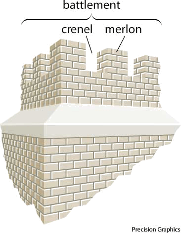 - from Italian merlone [augmentative of] merlo [battlement] 源自 意大利语 merlone merlo的增义成分 [城垛]