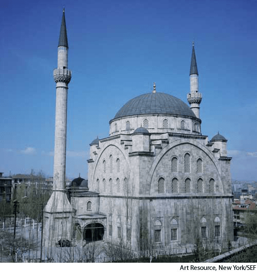 min·a·ret AHD[mĭn'ə-rĕtʹ] D.J.[ˌmɪnəˈret]K.K.[ˌmɪnəˈrɛt]n.(名词) minaretMaltepe Mosque designed by Recai Akçay (1909-1967)Ankara, Turkey- A tall, slender tower on a mosque, having one or more projecting balconies from which a muezzin summons the people to prayer.伊斯兰教寺院的尖塔:清真寺上高而细的塔,上有一个或多个突出的阳台,阿訇在其上为朝拜的人们布道