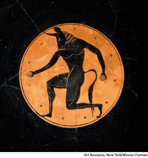 Min·o·taur AHD[mĭnʹə-tôr', mīʹnə-] D.J.[ˈmɪnəˌtɔː, ˈmaɪnə-]K.K.[ˈmɪnəˌtɔr, ˈmaɪnə-]n.Greek Mythology(名词)【希腊神话】 Minotaurdetail of a c. 515 bc Greek cup- A monster who was half man and half bull, to whom young Athenian men and women were sacrificed in the Cretan labyrinth until Theseus killed him.弥诺陶洛斯:半人半牛的怪物。它住在克里特岛的迷宫中并吃掉雅典进贡的童男童女直至被忒修斯杀死