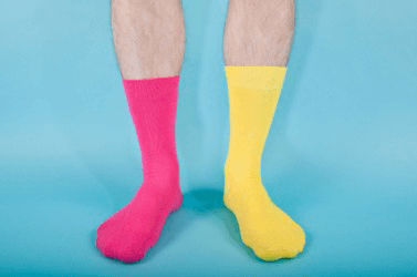 A mismatched pair of socks.
