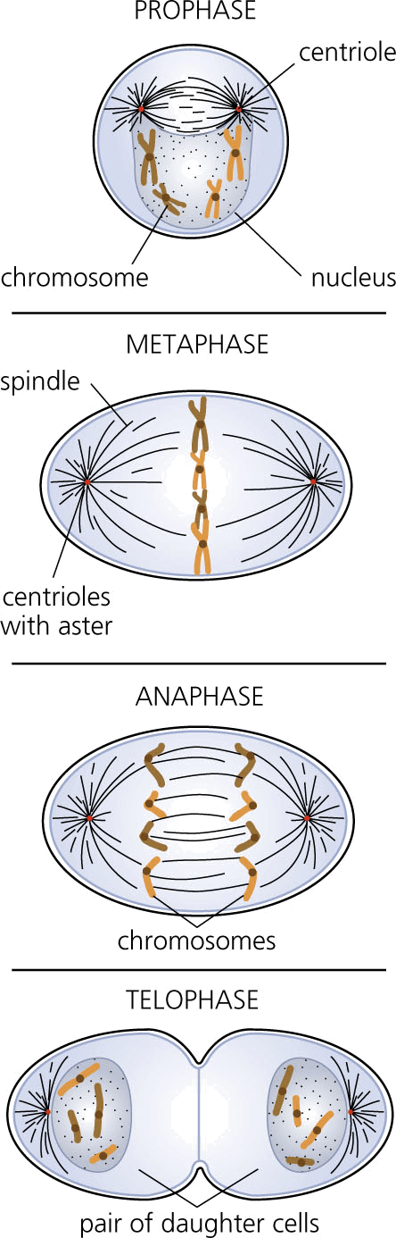 mi·to·sis AHD[mī-tōʹsĭs] D.J.[maɪˈtəʊsɪs]K.K.[maɪˈtosɪs]n.(名词)【复数】 mi.to.ses[-sēz] 【生物学】 Clarinda/Academy Artworks- The process in cell division by which the nucleus divides, typically consisting of four stages, prophase, metaphase, anaphase, and telophase, and normally resulting in two new nuclei, each of which contains a complete copy of the parental chromosomes. Also called karyokinesis 有丝分裂:细胞分裂过程,其间细胞核分裂典型分为四步:前期、中期、后期和末期,并正常分裂成两个细胞核,每一个都含有母染色体的完全内涵 也作 karyokinesis