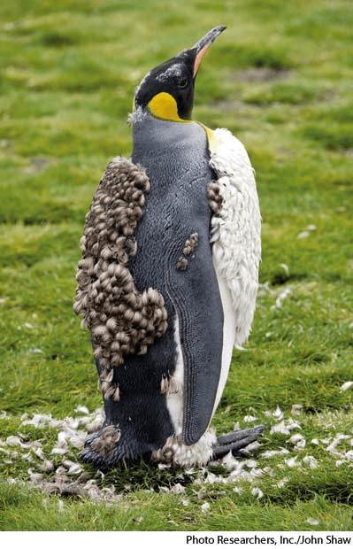 molt AHD[mōlt] D.J.[məʊlt]K.K.[molt]v.(动词)molt.ed, molt.ing, molts v.intr.(不及物动词) moltking penguin molting- To shed periodically part or all of a coat or an outer covering, such as feathers, cuticle, or skin, which is then replaced by a new growth.蜕皮,换毛:分阶段地脱掉部分或全身的皮毛或表面覆盖物,如羽毛、表皮或外皮,随后便为新长出的代替
