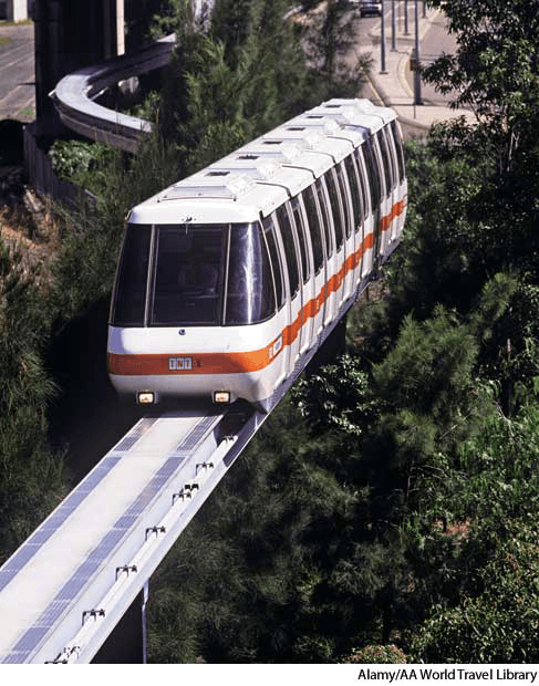 mon·o·rail AHD[mŏnʹə-rāl'] D.J.[ˈmɒnəˌreɪl]K.K.[ˈmɑnəˌrel]n.(名词) monorailSydney, Australia- A single rail serving as a track for wheeled vehicles traveling on it or suspended from it.单轨:使带轮交通工具在上面行进或暂停的单一轨道