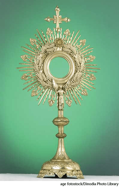 mon·strance AHD[mŏnʹstrəns] D.J.[ˈmɒnstrəns]K.K.[ˈmɑnstrəns]n.Roman Catholic Church(名词)【罗马天主教】 monstrance- A receptacle in which the host is held. Also called ostensorium 圣匣:盛放圣饼的容器 也作 ostensorium