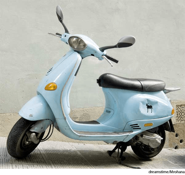 A two-wheeled vehicle with small wheels and a low-powered gasoline engine geared to the rear wheel.