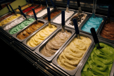 Multiple flavors of ice cream on display.