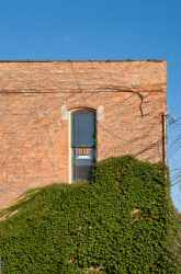 A narrow window in a brick building.