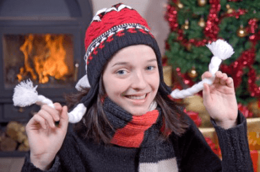 A girl wearing a striped neckpiece.