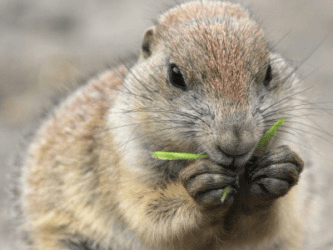 A groundhog nibbles a piece of grass.