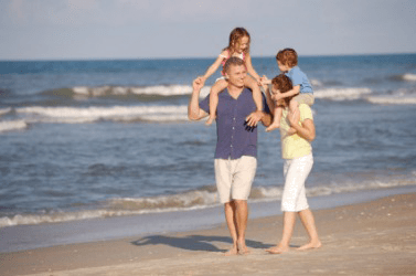 A family walking nigh to the water.