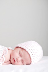A newborn wearing a nightcap.