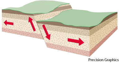 A fault in which the hanging wall has moved downward relative to the footwall.