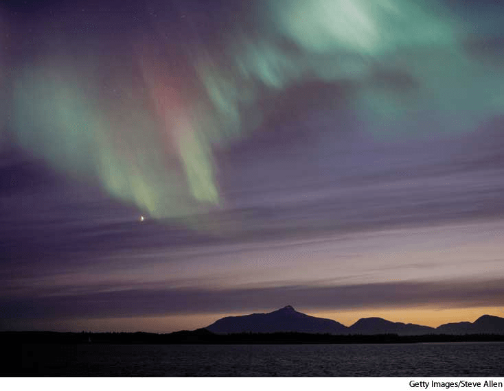 aurora bo·re·al·is AHD[bôr'ē-ălʹĭs, bōr'-] D.J.[ˌbɔːriːˈælɪs, ˌbəʊr-]K.K.[ˌbɔriˈælɪs, ˌbor-]n.(名词) aurora borealis- Luminous bands or streamers of light that are sometimes visible in the night skies of northern regions and are thought to be caused by the ejection of charged particles into the magnetic field of the earth. Also called northern lights 北极光:通常在北部地区可看到的夜空中的发光带或光流,通常认为由带电粒子射入地球磁场引起 也作 northern lights