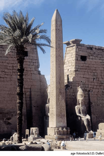 ob·e·lisk AHD[ŏbʹə-lĭsk] D.J.[ˈɒbəlɪsk]K.K.[ˈɑbəlɪsk]n.(名词) obeliskred granite obelisk atLuxor TempleLuxor, Egypt- A tall, four-sided shaft of stone, usually tapered and monolithic, that rises to a point.方尖石碑:升到一点的四面体高塔或碑石,常为尖顶和由整块石料的