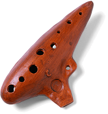 1. A small terra-cotta or plastic wind instrument with finger holes, a mouthpiece, and an elongated ovoid shape.奥卡利那笛,洋埙:一种小的赤陶制成或塑料乐器,有手孔和吹口,加长的椭形