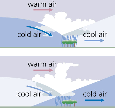 - Meteorology To force (air) upward from Earth's surface, as when a cold front overtakes and undercuts a warm front.【气象学】 使(气旋等)锢囚:迫使(空气)从地球表面上升,如在冷锋压过并削弱暖锋时