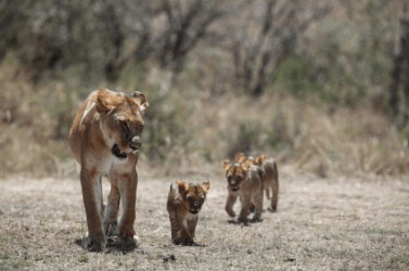 A lioness with her offspring.