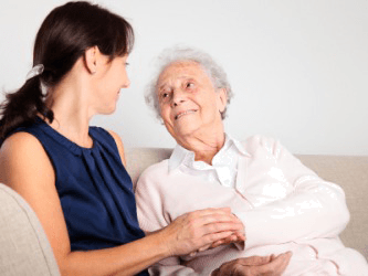 An old woman with her caregiver.