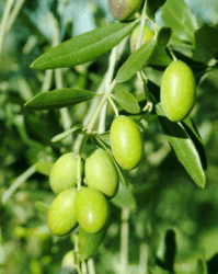 Green olives on an olive tree.