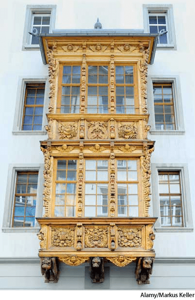 1. A projecting bay window, supported from below with a corbel or bracket.凸肚窗:一种投影式凸窗,下面用梁托或支架支撑起来