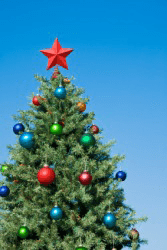 A Christmas tree covered with ornaments.