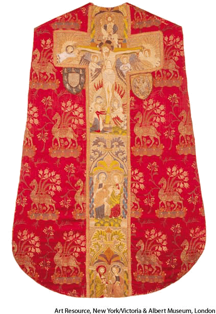 or·phrey AHD[ôrʹfrē] 也作 or·fray [-frā'] D.J.[ˈɔːfriː] 也作 or·fray [-ˌfreɪ]K.K.[ˈɔrfri] 也作 or·fray [-ˌfre]n.(名词)【复数】 or.phreys 也作 or.frays  orphreythe early 15th-century Erpingham chasuble, of Italian silk with an English orphrey- A band of elaborate embroidery decorating the front of certain ecclesiastical vestments.精制的刺绣品:装饰于特定基督教法衣前部的精心制作的刺绣品