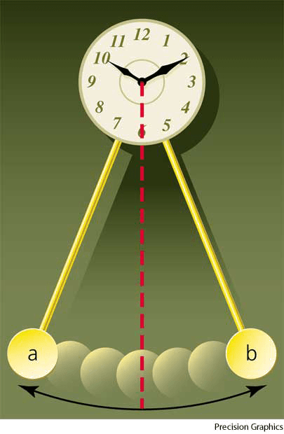 释义 os·cil·la·tion AHD[ŏs'ə-lāʹshən] D.J.[ˌɒsəˈleɪʃən]K.K.[ˌɑsəˈleʃən]n.(名词)oscillationOscillation of a clock pendulum takes it from point a to point b and back to a. The dashed red line is the position of the pendulum at rest.