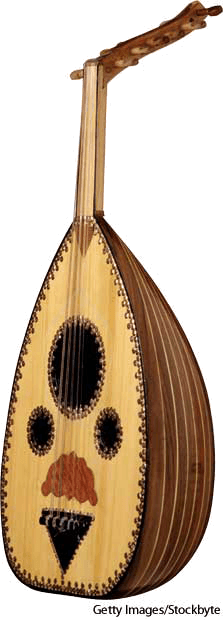 乌得琴:西南亚和北非的一种弦乐器,状似诗琴