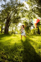 A little girl playing out in her yard.