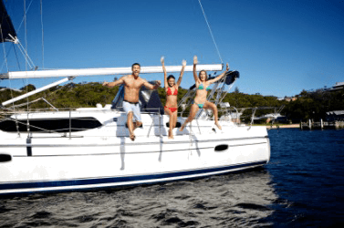 A group jumping overboard.