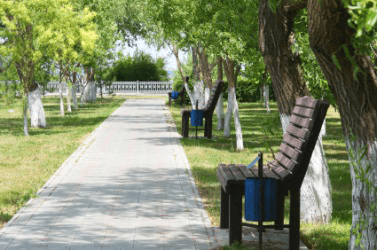 Benches beside an avenue.